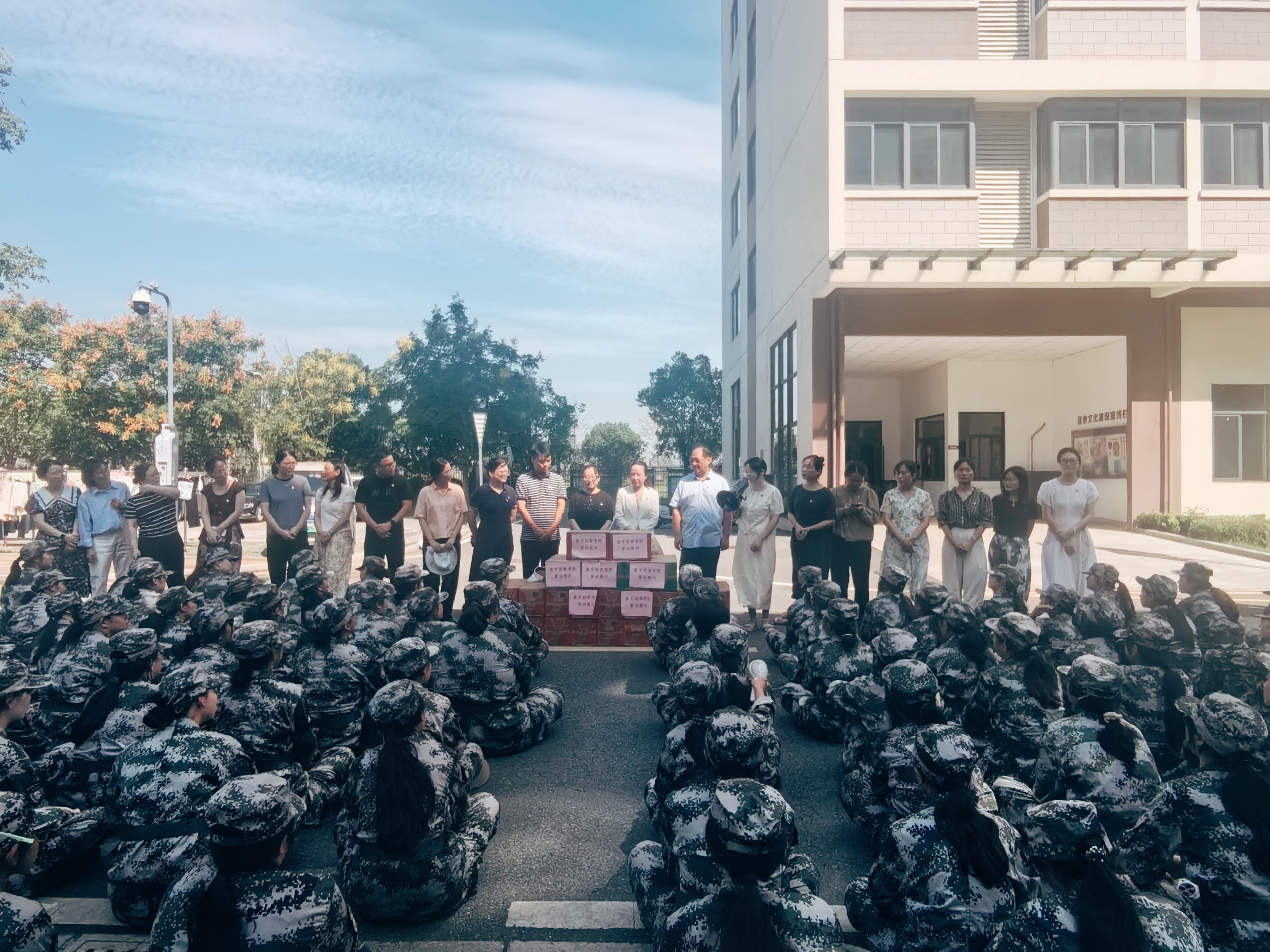 为深入了解2025级新生军训情况,鼓舞参训学生士气,并向辛勤付出的承训教官表达诚挚的敬意与感谢,9月16日上午,数字财商学院院长、党总支书记滕静涛、学院领导班子成员、党员教师代表以及2025级全体辅导员深入军训一线,为正在烈日下挥洒汗水的2025级全体参训学生和教官们送去学院的深切关怀与防暑降温物资。