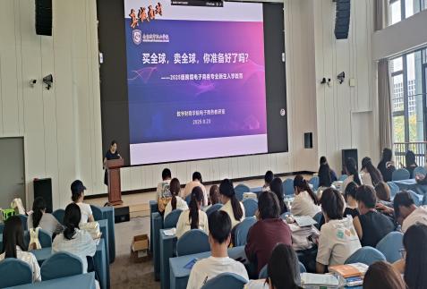 随后,跨境电子商务团队老师从多个维度为新生们揭开大学与专业的神秘面纱。在讲解大国地位与职业教育板块时,老师们结合当下国家积极推动职业教育高质量发展,以及跨境电商在国际贸易中占据重要地位的背景,深入浅出地阐述了职业教育的重要性与跨境电商专业广阔的发展前景;谈及母校,老师们细数学校在教学设施、师资力量等方面的优势,以及多年来在跨境电商领域取得的丰硕成果;对于专业介绍,从课程设置、实训项目到技能培养方向,都进行了细致说明;在大学生活分享环节,老师们鼓励新生积极参与社团活动、竞赛项目,全方位提升自己的综合素质。