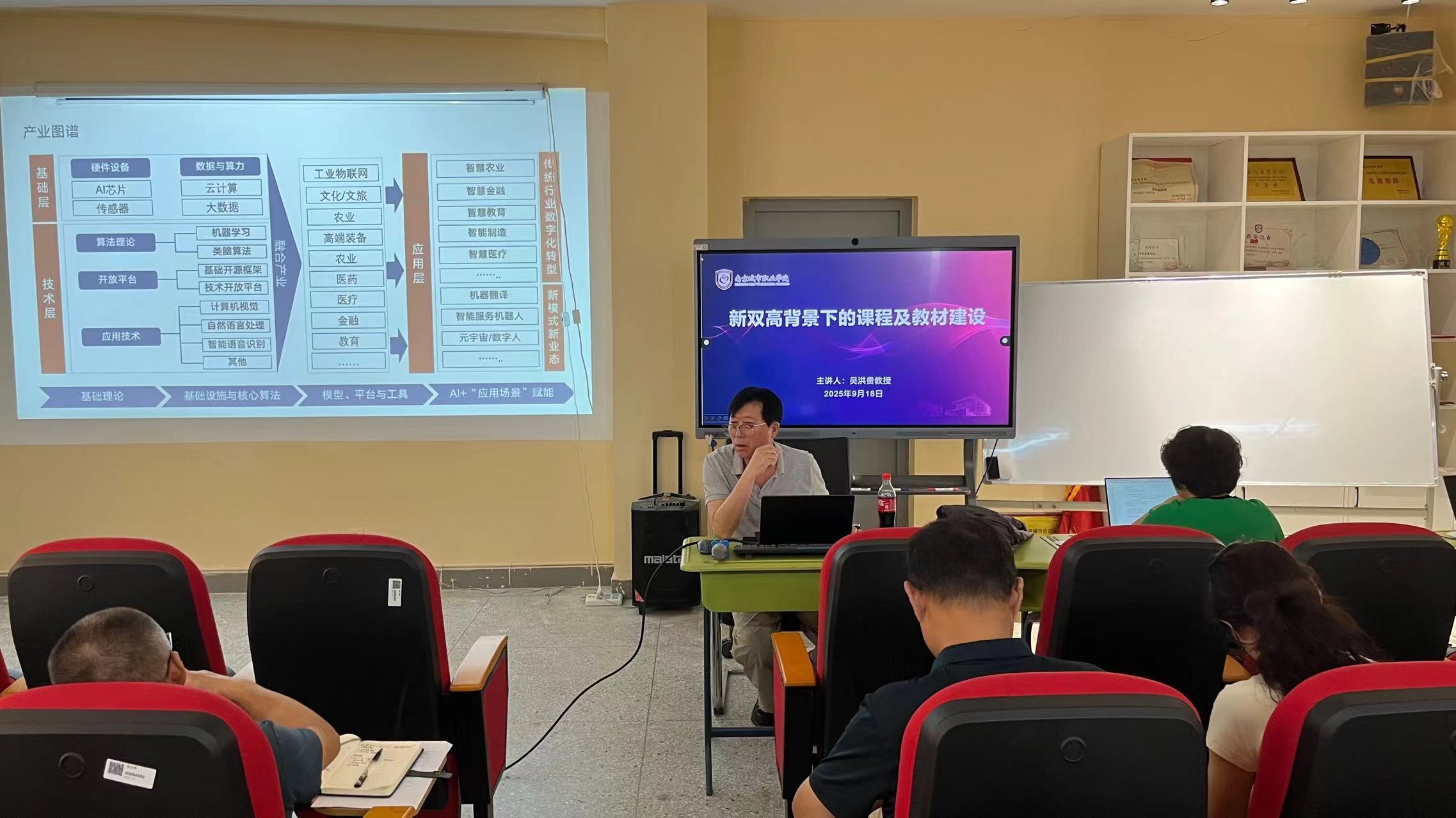2025年9月18日,数字财商学院邀请特聘专家吴洪贵教授在溧水校区厚生楼组织开展了关于新双高背景下课程与教材建设的专题指导,数字财商学院院长滕静涛、副院长丁亮、副院长汪洋,智能工程学院副院长徐山、副院长朱燕及多名教师共同参加此次活动。