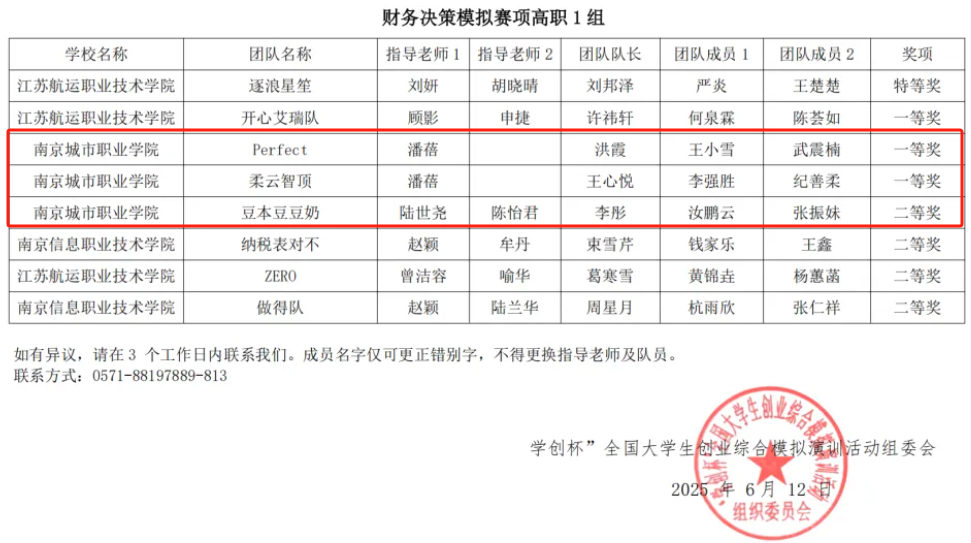 此次优异成绩的取得,既展现了学生过硬的专业能力,也彰显了南京城市职业学院数字财商学院的教学成果,为学院进一步提升人才培养质量积累了宝贵经验。学院将以此次比赛为契机,持续优化创新创业教育体系,为社会输送更多高素质财商人才。