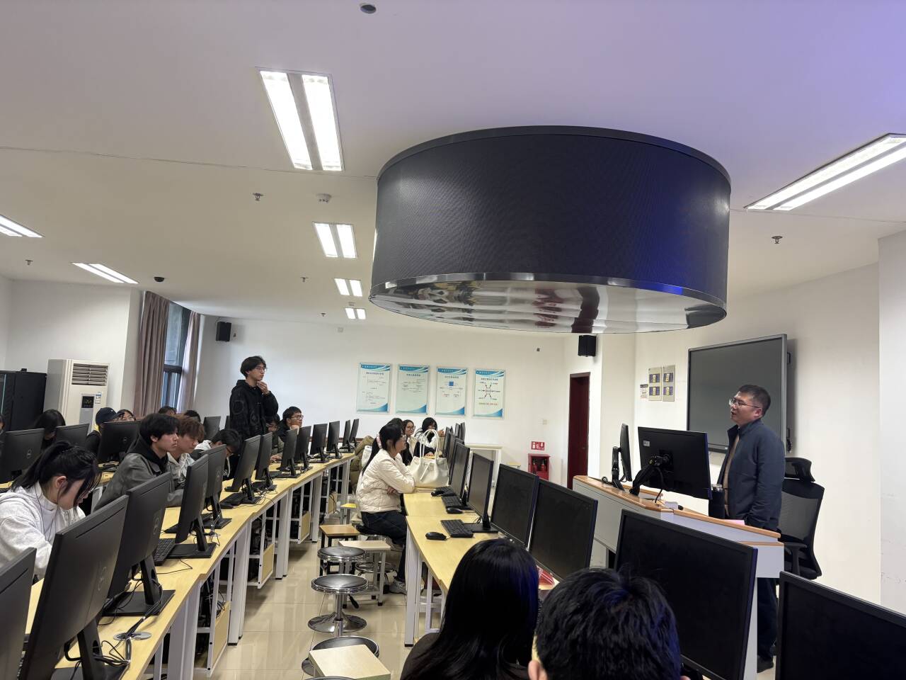 随后,双方召开了专题座谈会。金陵科技学院商贸系主任华树春主持座谈并担任主讲。华主任首先对南京城市职业学院师生的到访表示热烈欢迎,随后就金陵科技学院跨境电商专业的人才培养方案进行了系统而详尽的解读,涵盖了课程体系、实践教学、师资力量及未来就业方向等多个方面。此外,华主任还重点针对“3+2”分段培养项目的特点,为同学们进行了专升本相关政策的专项解读与答疑,就课程衔接、选拔标准等关键问题提供了权威的指导和建议。讲解深入浅出,现场互动积极,气氛热烈。