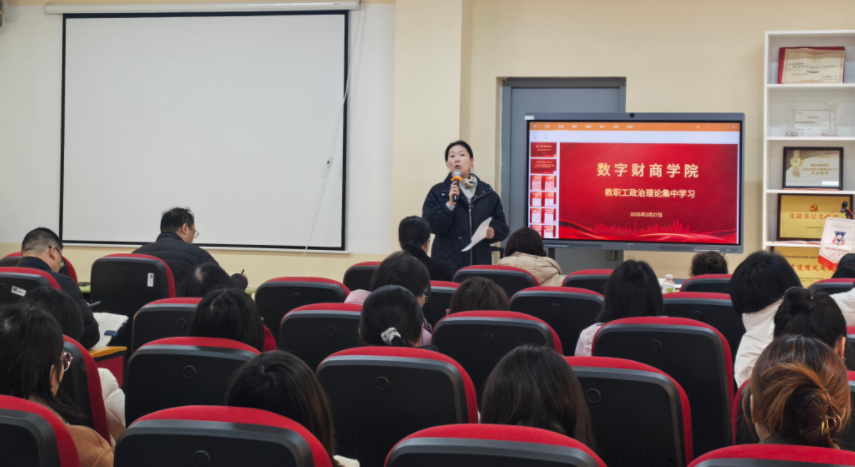 春启新程,聚力前行。2026年2月27日,作为本学期教职工到岗首日的重要安排,数字财商学院在溧水校区厚生楼301会议室组织开展二月教职工政治理论集中学习,深入学习领会2026年全国教育工作会议重要精神以及中共中央办公厅印发《关于在全党开展树立和践行正确政绩观学习教育的通知》要求,统一思想、凝聚共识,为全年各项工作开好局、起好步奠定坚实思想基础。本次学习由学院党总支书记、院长滕静涛主持,全体教职工参加。